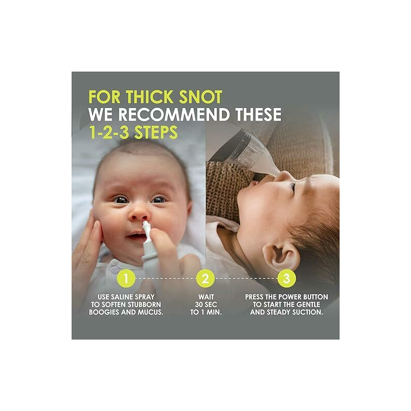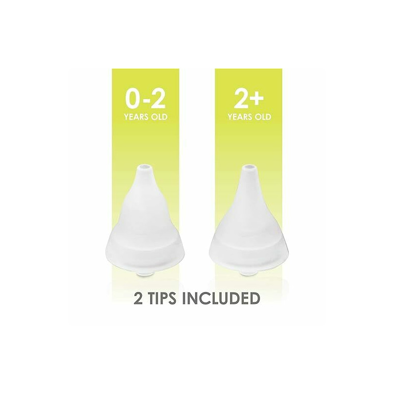 - Vârfurile din silicon reutilizabile de calitate medicală (inclusiv mărimea pentru sugari și copii mici) curăță nasul bebelușului într-un proces rapid și sigur, care minimizează contagiunea.