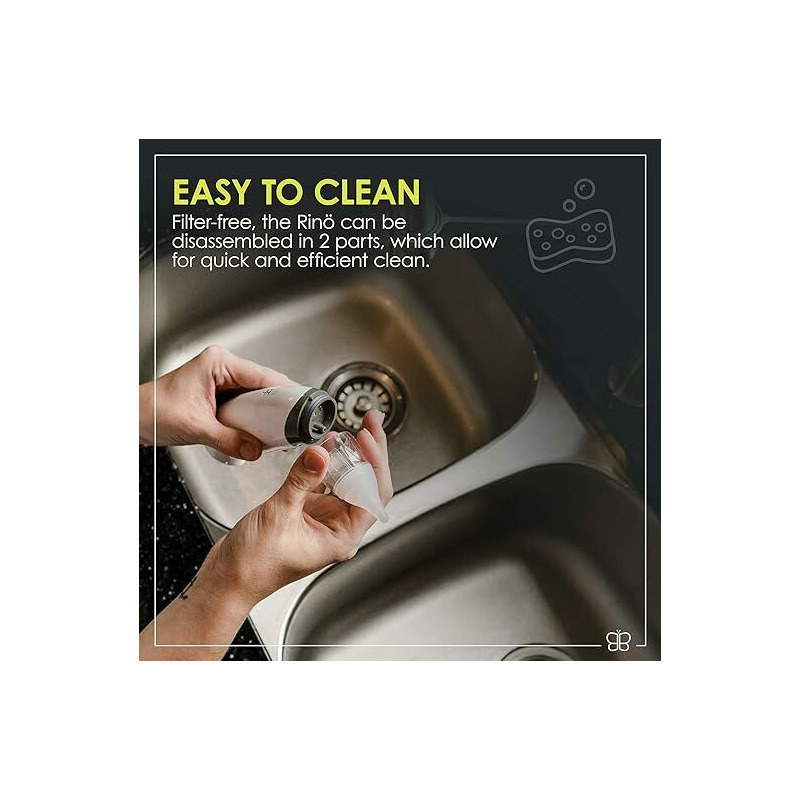 - Cu ajutorul lui Rino, îndepărtați ușor excesul de mucus atunci când bebelușul are nasul înfundat, fără a irita pasajul nazal.