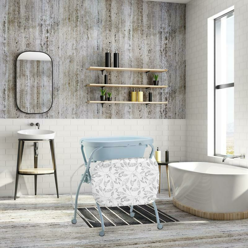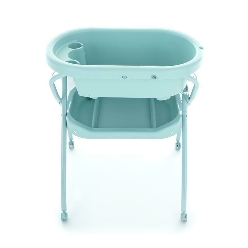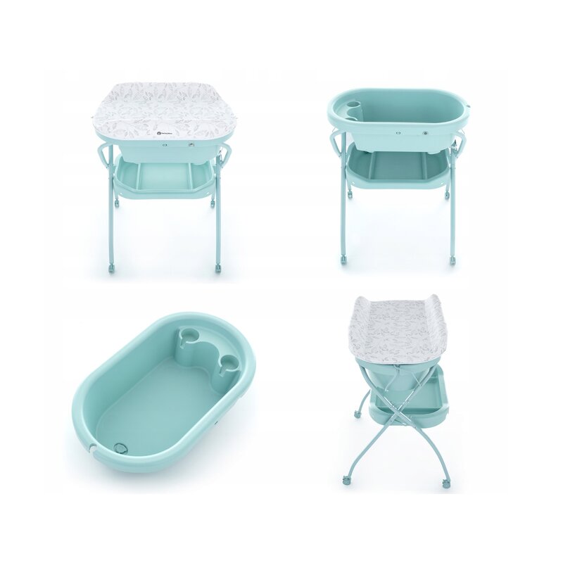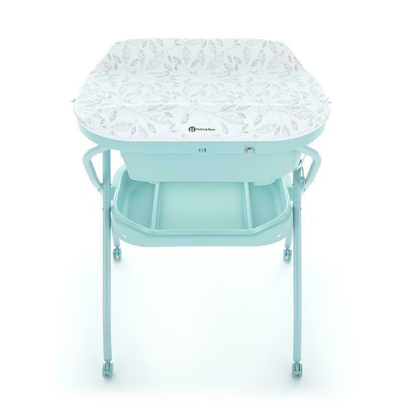 Cădiță pliabilă 3 în 1, cu măsuță de înfășat și spațiu de depozitare și sistem de scurgere, Spa, Petite&Mars, Albastru