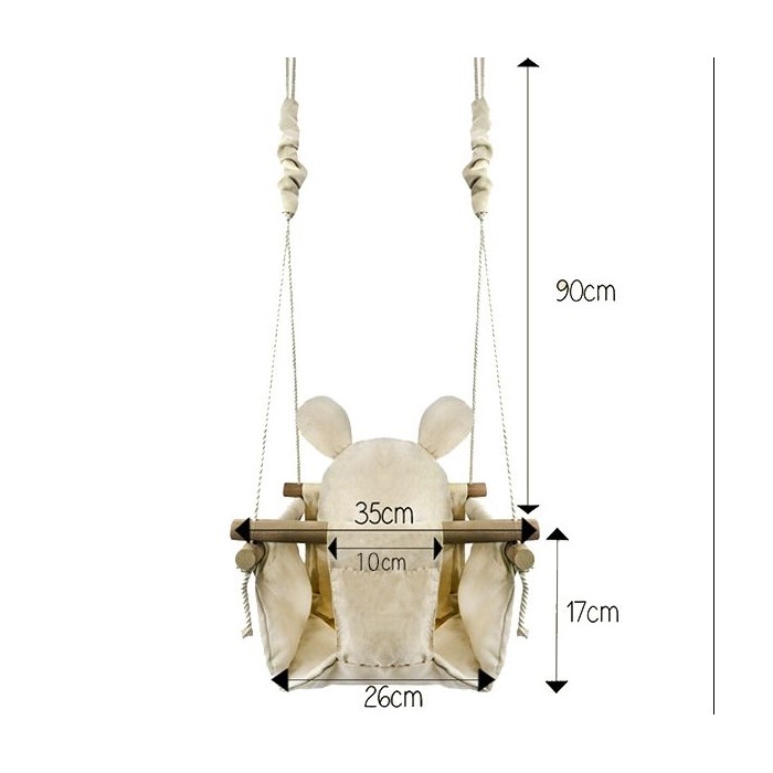 • Versatilitate și Ajustabilitate: Înălțimea leagănului este reglabilă, iar lungimea implicită a coardei este de 90 cm, oferind libertate de adaptare și personalizare.
