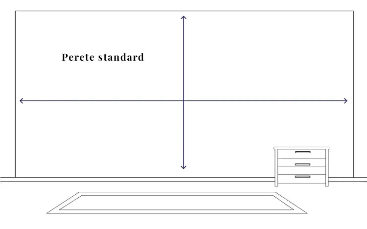 Măsoară lungimea și înălțimea completă a peretelui. Avem nevoie de dimensiunea exactă a peretelui tău, așa că nu uita să verificimăsurătorile înainte de a le transmite. Nu include plinte sau baghete tavan în măsurătorile tale. Întotdeauna verifică din nou măsurătorile pentru a evita orice eroare.