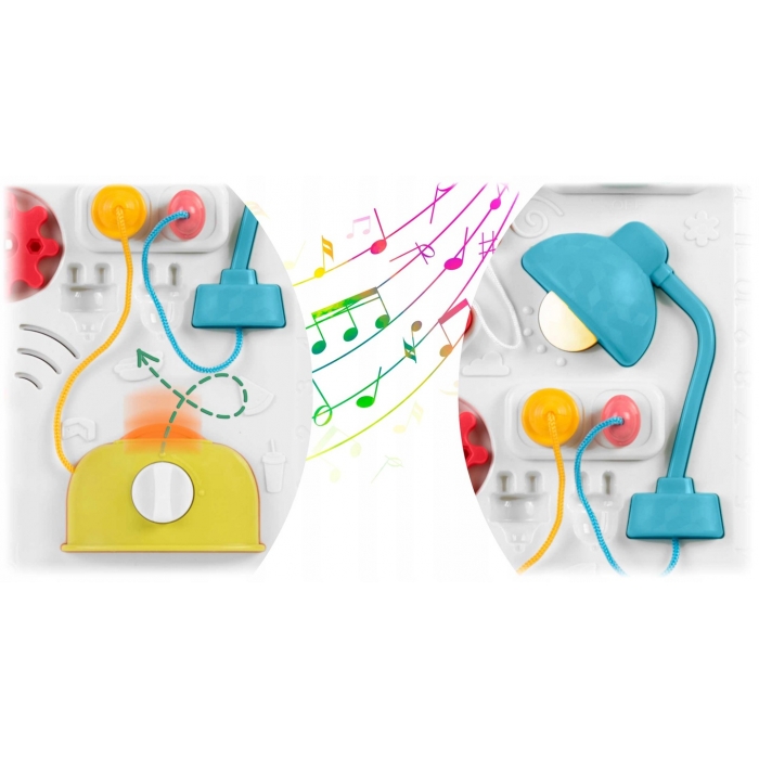 Această masuță interactivă și educațională oferă copilului o gamă variată de activități, contribuind la dezvoltarea abilităților motorii fine, la explorarea formelor, culorilor și numerelor, toate într-un mediu sigur și distractiv. Fiind certificată pentru siguranță conform standardelor europene, este o alegere excelentă pentru dezvoltarea și educația copiilor într-un mod interactiv și captivant.