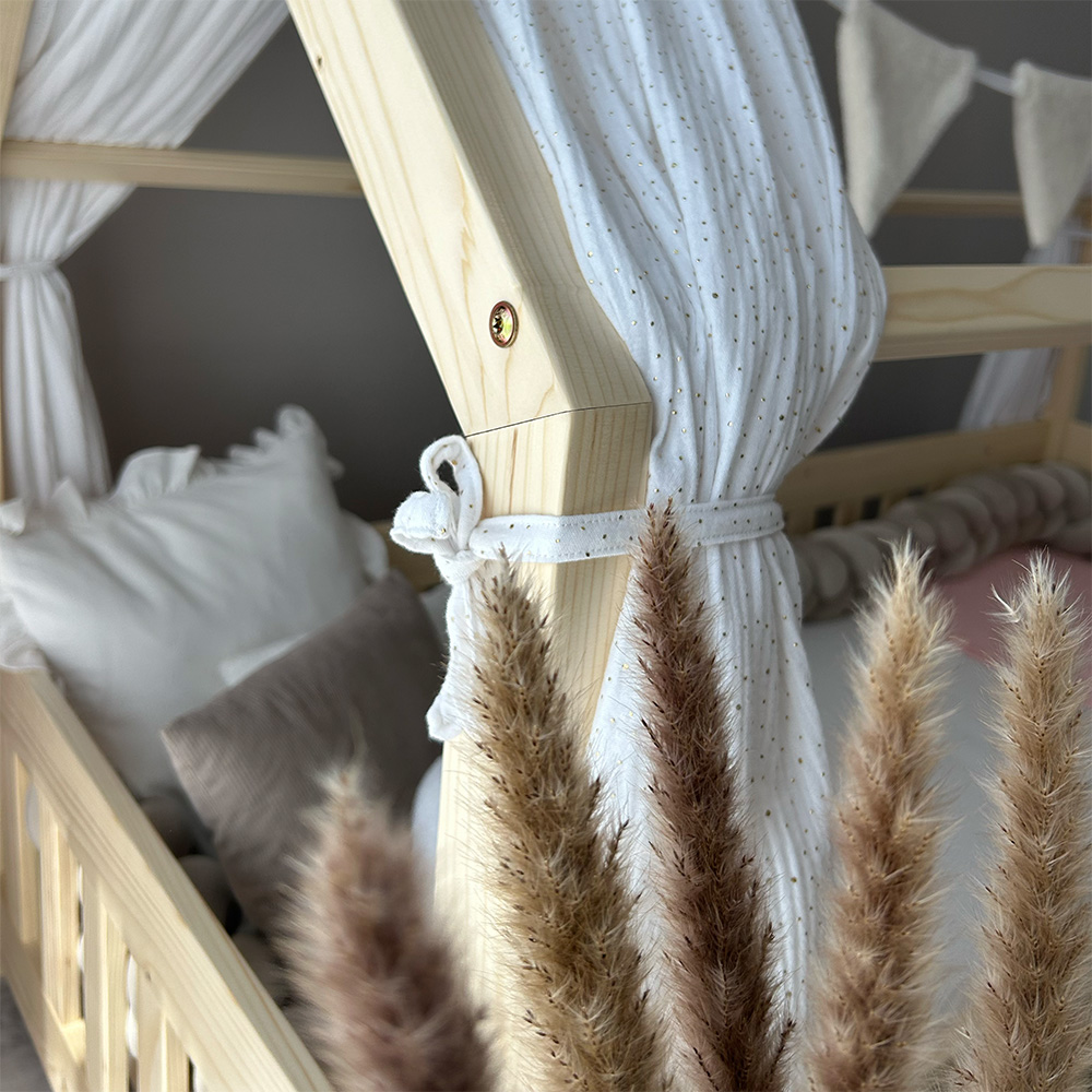La fiecare pat tip căsuță Angel Nest oferim gratuit somiera, realizată din scânduri late a câte 6 cm lățime și 1,8 cm înălțime, perfect adaptat dimensiunii patului ales. Astfel, te asiguri că toate componentele se îmbină armonios, fără ajustări suplimentare.