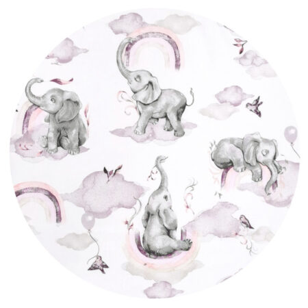 -38% Off Lenjerie pătuț 3 piese pentru pat 120×60 cm, cu protecție laterală, Qmini, Elephants on Rainbow Pink