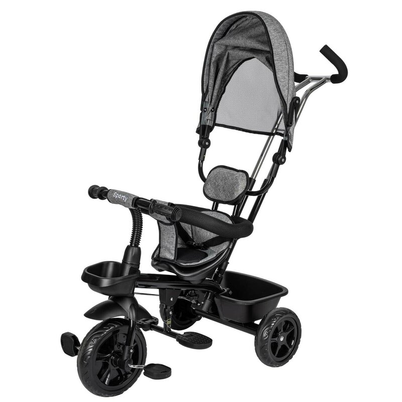 Tricicletă cu șezut rotativ, reglabilă, roți EVA, pedalare liberă, suport picioare, Free2Move, Black Grey