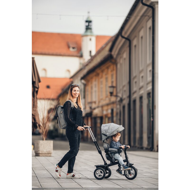 - Un avantaj al acestui triciclete este că scaunul poate fi rotit pentru a-l poziționa în direcția părintelui sau în direcția de deplasare.